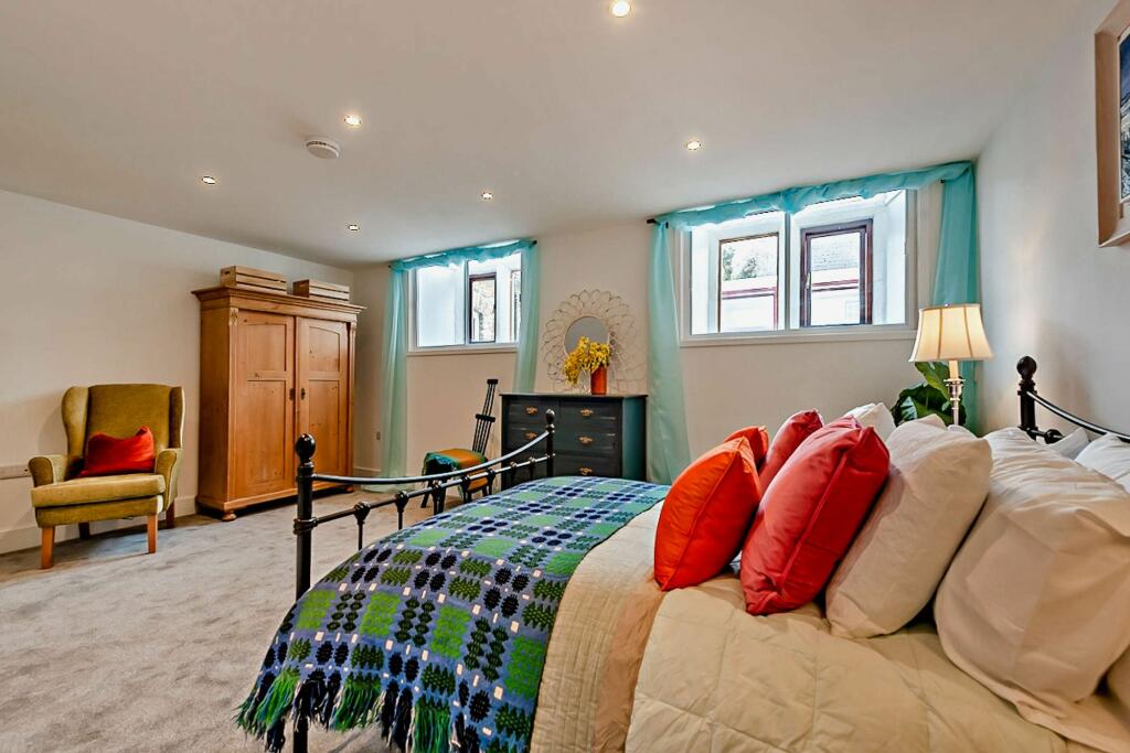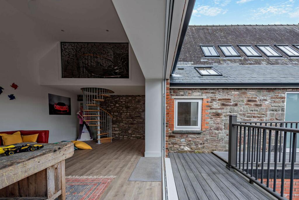 Distinctive large home in Laugharne, Bradshaw House, blending history with modern luxury. Four double bedrooms with en-suites, versatile spaces, high ceilings, exposed beams, sleek kitchen, artists' room, courtyard garden. Exceptionally unique property.