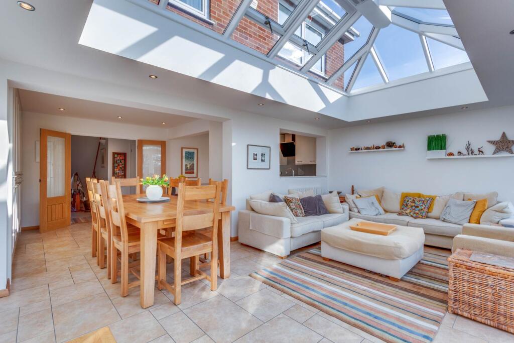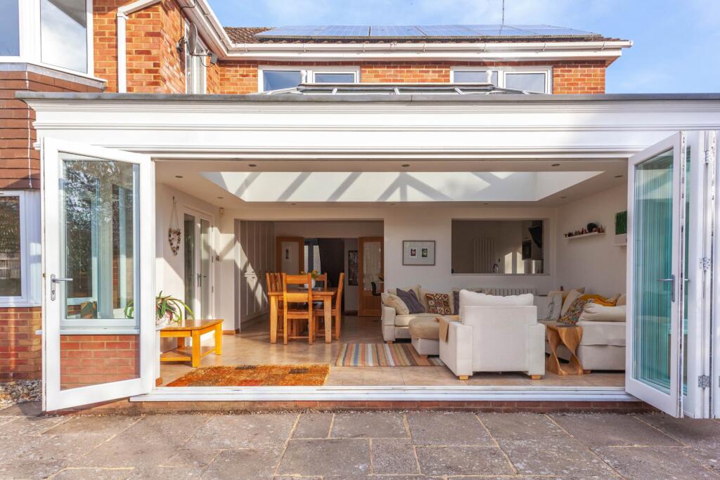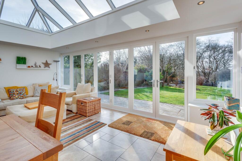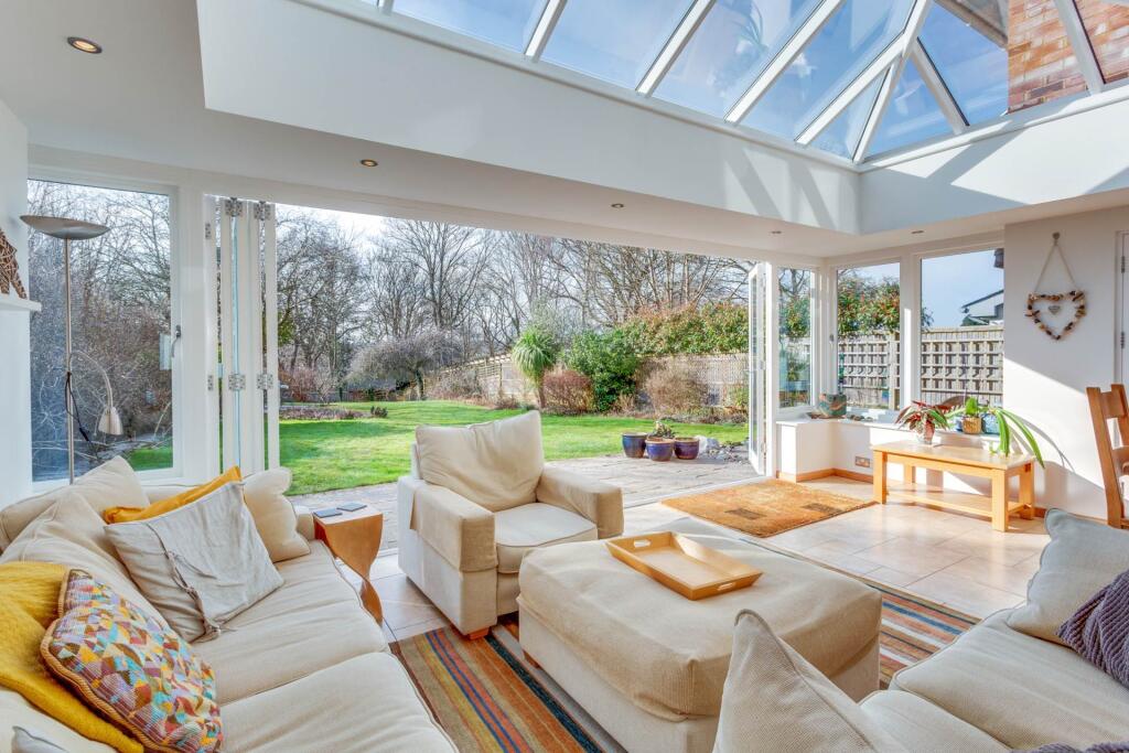 New to the market is this vastly extended four bedroomed detached house, built in 1970, and situated in a quiet road in the heart of Emmer Green. Presented in immaculate condition throughout the house offers versatile accommodation including a superb orangery with vast roof lantern.