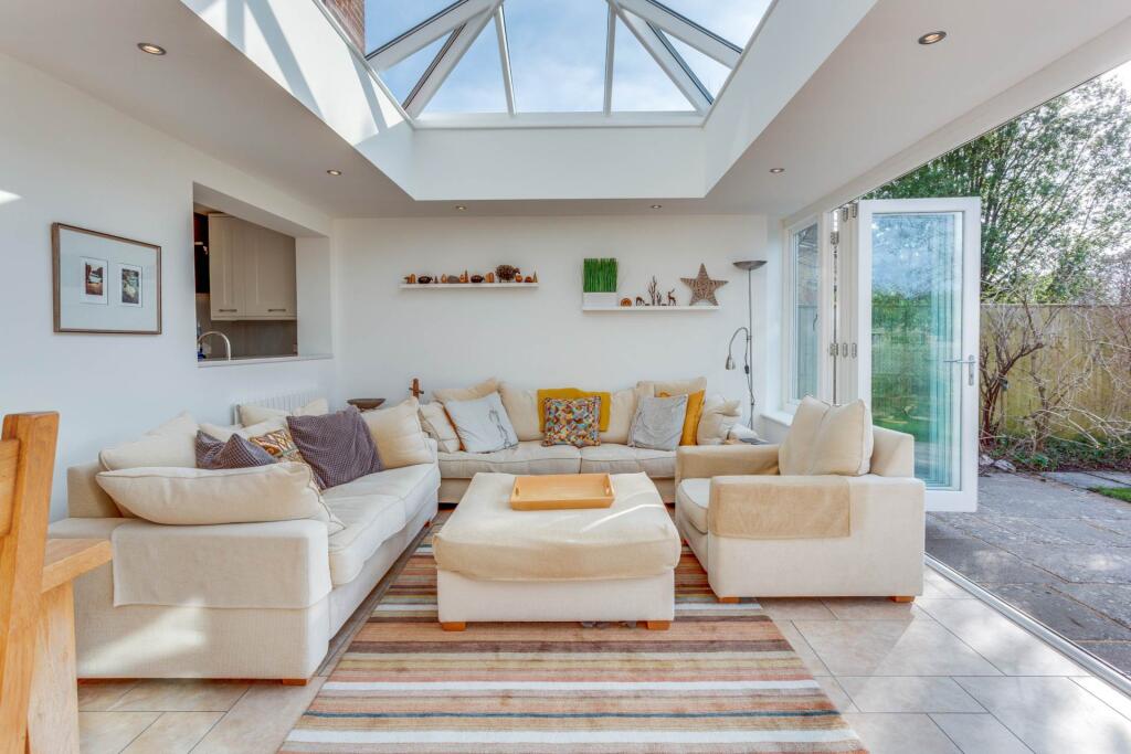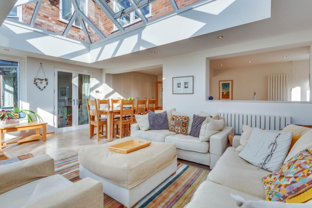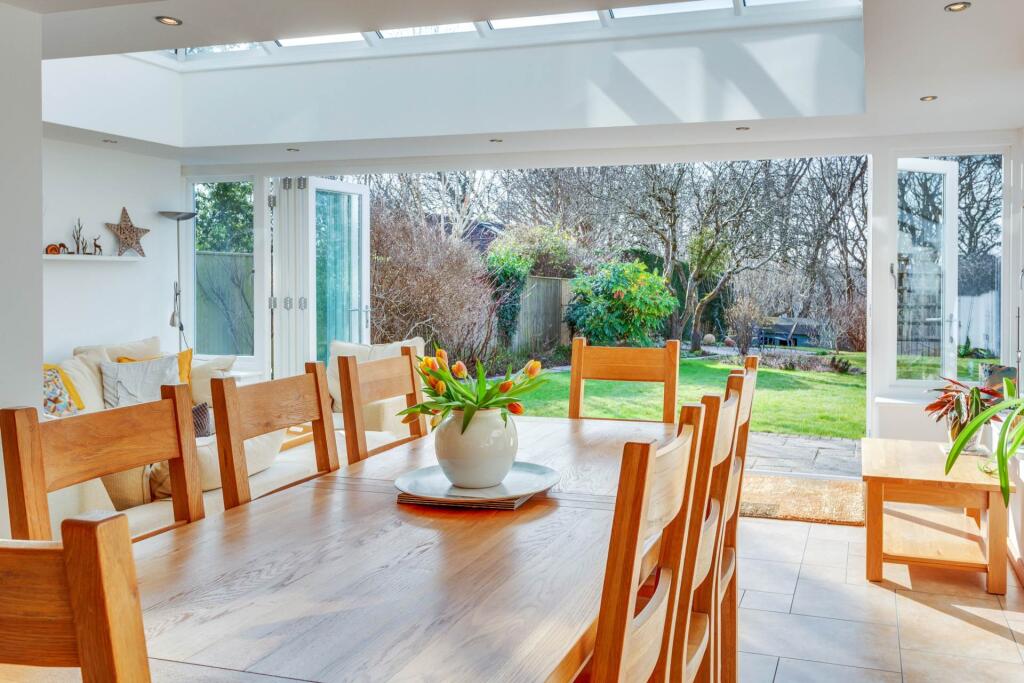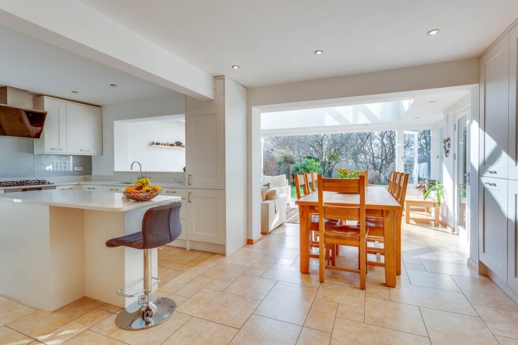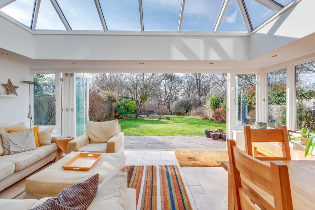 New to the market is this vastly extended four bedroomed detached house, built in 1970, and situated in a quiet road in the heart of Emmer Green. Presented in immaculate condition throughout the house offers versatile accommodation including a superb orangery with vast roof lantern.