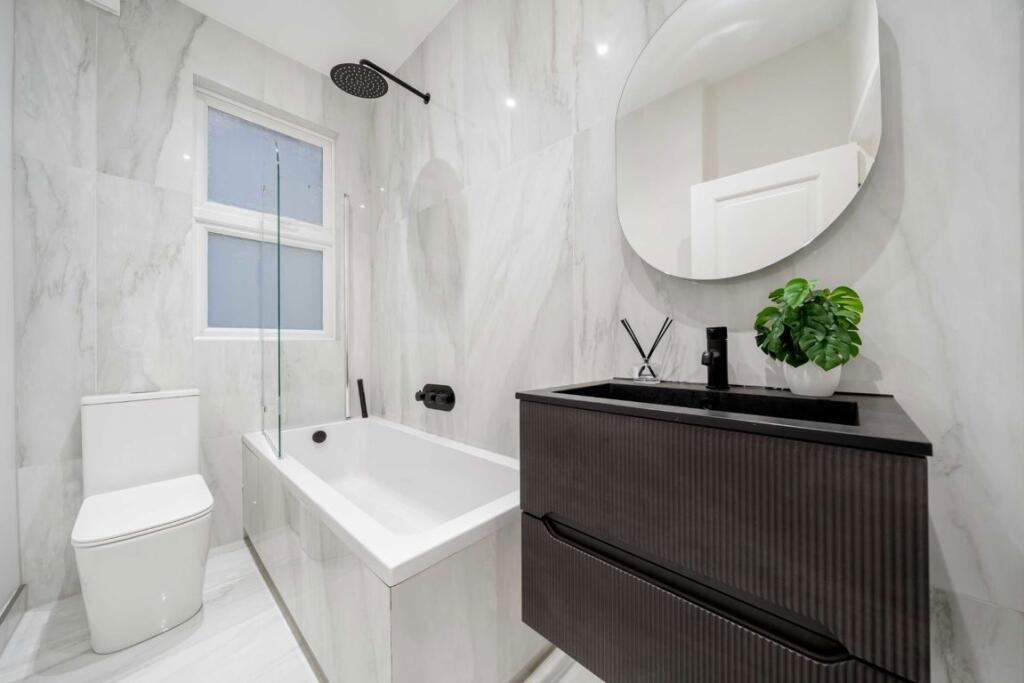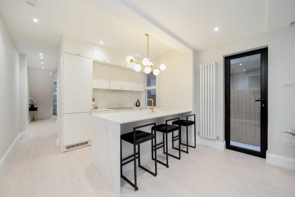 Recently refurbished and beautifully presented, this bright two-bedroom garden flat combines modern finishes with charming original features. Benefiting from a private entrance, high ceilings and wooden floors throughout, the flat feels bright and spacious from the moment you step inside. The ope...