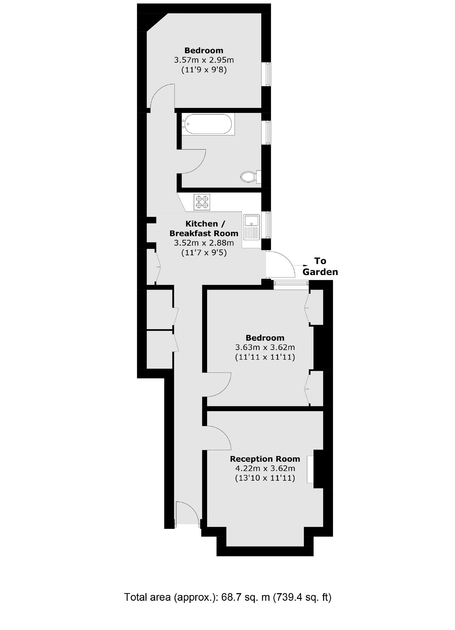 A charming ground-floor period maisonette presented in excellent order throughout, comprising a spacious reception room with a bay window and an original fireplace, a separate kitchen/breakfast room, two double bedrooms and a bathroom. Outside there is a private patio garden.