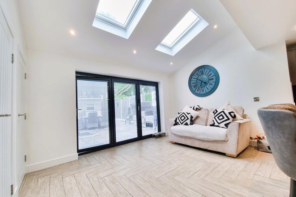 This four-bedroom, two-bathroom property located in Farlington, Portsmouth is presented in excellent condition following what appears to be a recent and high quality refurbishment. The interior features a modern, open-plan kitchen that opens out to a well-maintained back garden. The home has been updated with modern finishes and fixtures throughout; the bathrooms are particularly impressive. The property boasts a sizeable rear garden with ample patio space, a hot tub, and a garden shed – a significant selling point in today’s market. The location benefits from relatively close proximity to good schools (Solent Infant & Junior School and Springfield Primary School), and railway stations in nearby Hilsea and Cosham offer access to the broader Portsmouth region.
