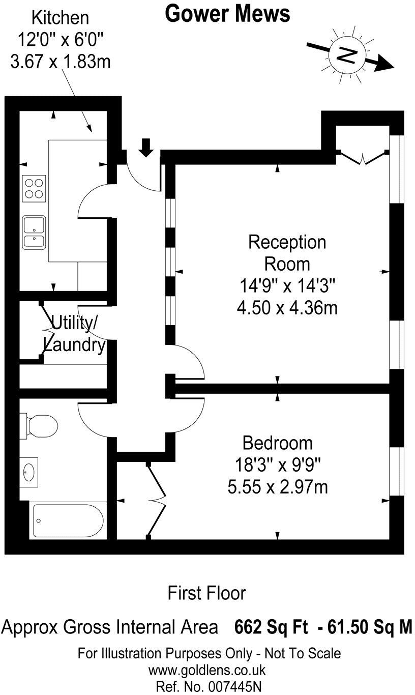 Located on a quiet mews street is this spacious 1st floor apartment, finished to a high standard benefiting from a feature fireplace & wooden flooring in the reception/kitchen. Conveniently located for the Central and Northern lines. VIDEO VIEWING.