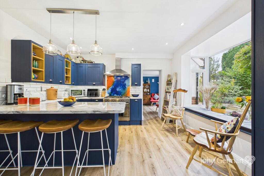 Bay fronted period detached family home. Thoughtfully extended in recent years to create a stylish and flexible living space showcasing a light filled open plan breakfast kitchen with a spectacular box bay window and window seating, overlooking a private landscaped garden.