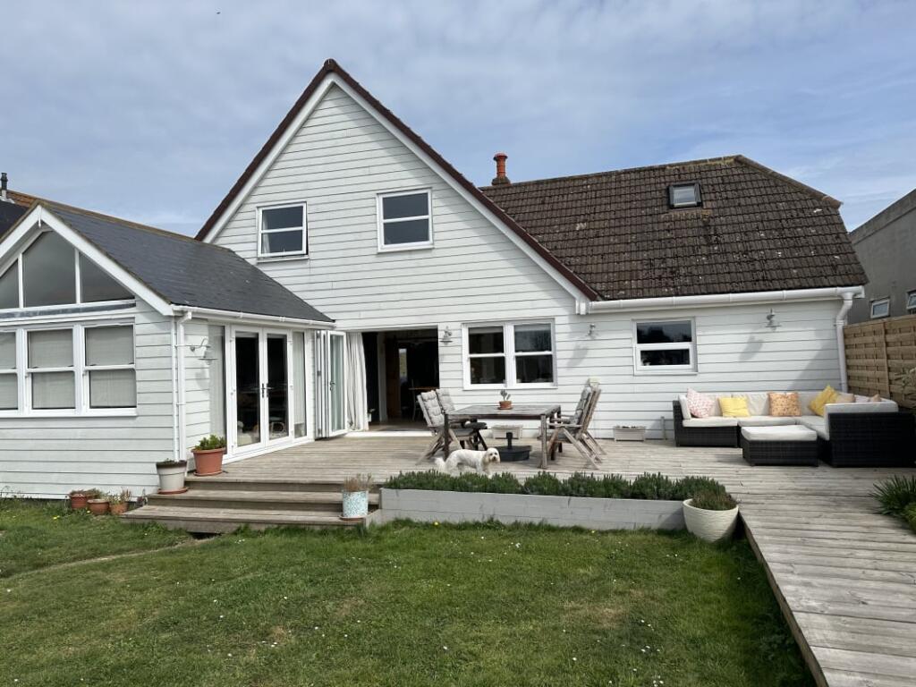 Large beachside house with driveway parking for up to 7 cars, 4/5 double bedrooms, master with en-suite & walk-in wardrobe. Large 130' south/west facing private garden with decked areas. Good sized hallway leading to large open L shaped kitchen/dining/living area with additional large formal ...