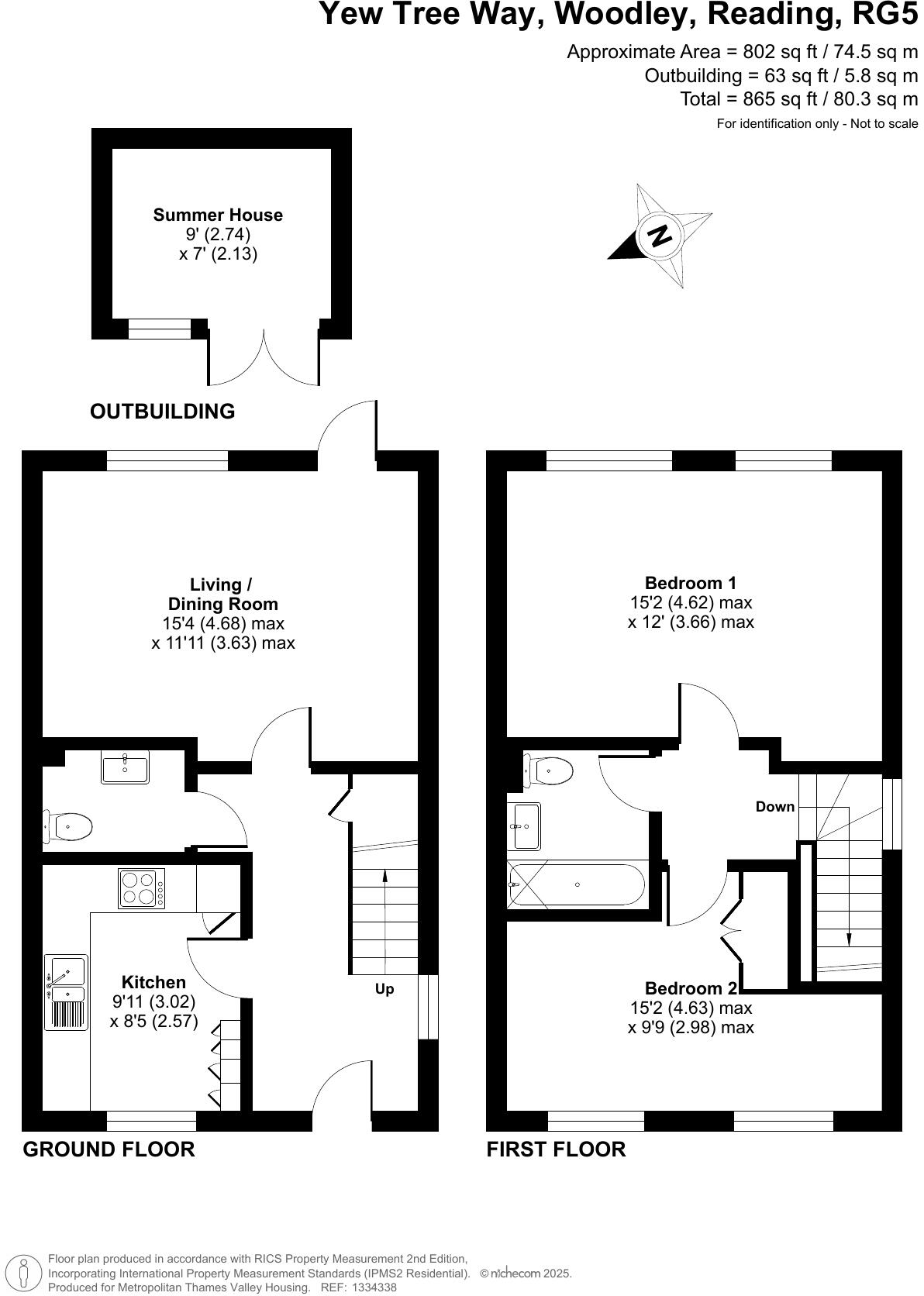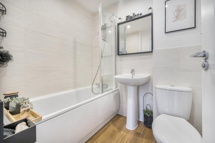 Bright and modern two-bedroom semi-detached house now available in Woodley through Shared Ownership. The property is spread across two floors, with the living room, a separate kitchen, and a toilet on the ground floor. The first floor features two bedrooms and a family bathroom.