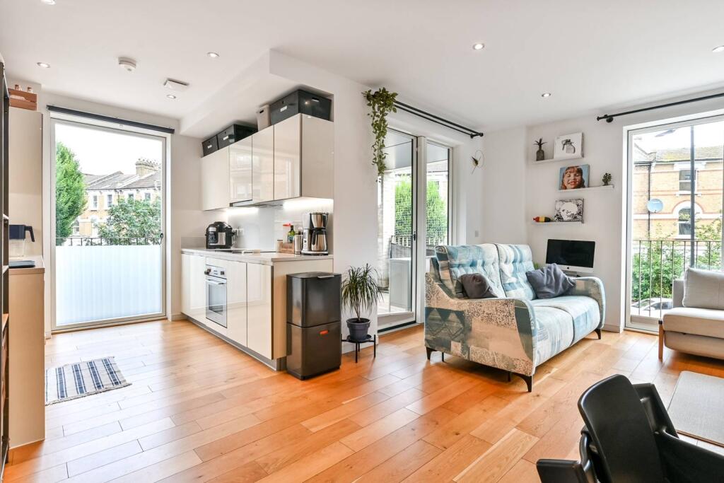 LONG LET. This stylish two bedroom apartment on the first floor is bright and spacious throughout featuring a large open plan kitchen and reception room looking onto a private balcony, and 2 large bedrooms.