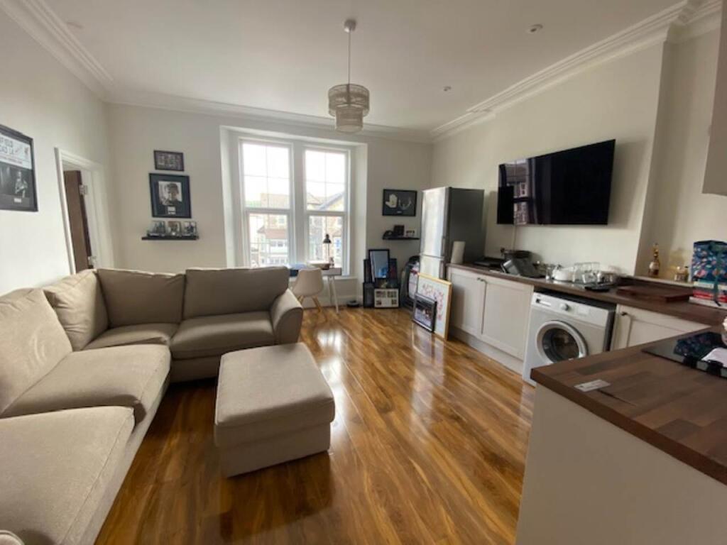 Immaculately presented first floor apartment, two double bedrooms, open plan living area, kitchen area, shower room, electric heating, double-glazing, parking. Easy access to town centre and train station.