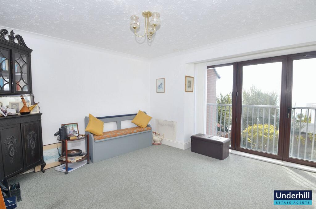 Superb 2-bed first floor apartment in The Rockstone with stunning sea views, Juliet balcony and beautifully kept communal gardens, ready to be modernised. A bright lounge, fitted kitchen, two double bedrooms with wardrobes and a stylish shower room. Secure underground parking with lift access, pl...