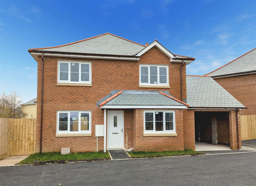 A newly constructed, double fronted four bedroom detached family home, with gardens. garage and parking. Fitted kitchen, sitting and dining room, study, three bathrooms. Garden, parking and garage. Council Tax TBC. Freehold