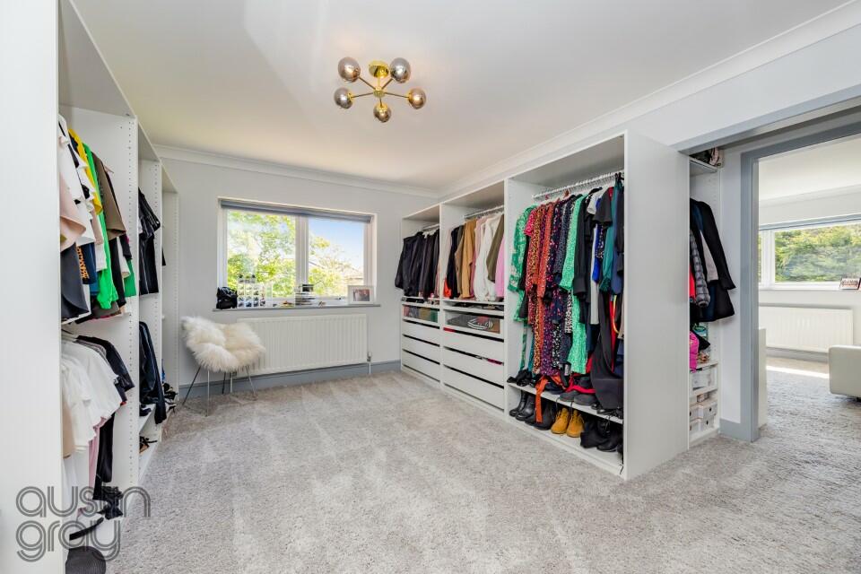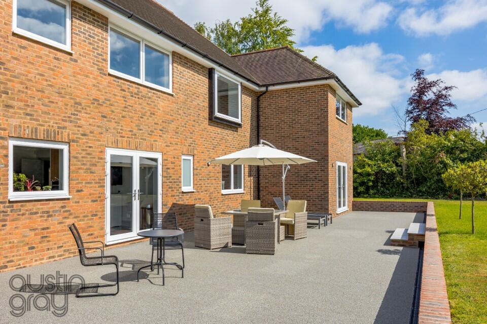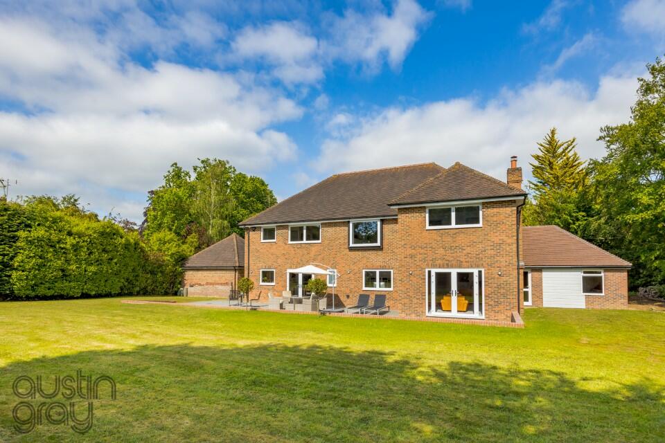 SUBSTANTIAL FAMILY house ( 5624 sq/ft/522sq m ) set in approximately 0.7 acre of STUNNING and SECLUDED gardens. Planning permission granted for further single storey extension to include a swimming pool, gym and living areas. FIVE GARAGES.
