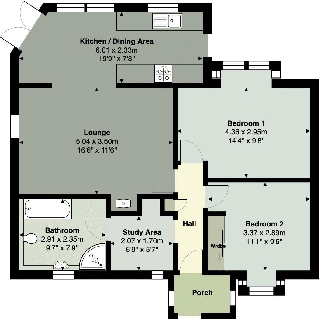 This individual, extended detached bungalow features two double bedrooms, modern kitchen and bathroom, delightful private gardens with views and is located in Newton Abbot The accommodation begins with the entrance porch which has access to the entrance hallway with a storage cupboard ho...