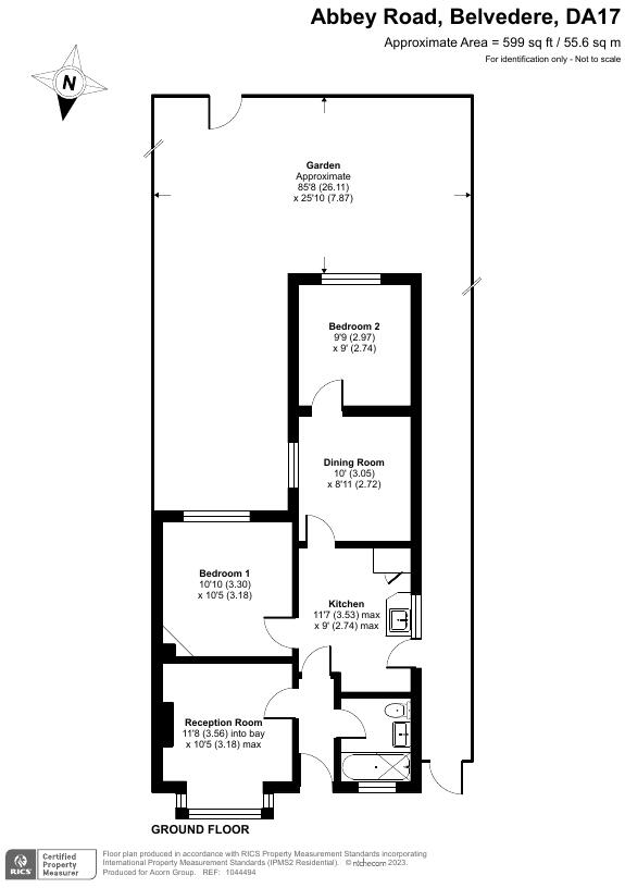 The property is located on Abbey Road, Belvedere, in the Bexley borough of Greater London. It’s a two-bedroom, one-bathroom house with a plot size of 599 sqft and a total area of 371.25 sqft. The property benefits from being close to St Augustine Of Canterbury Cofe Primary School (rated ‘Good’ by Ofsted), which is only 0.02 km away. Belvedere train station is also nearby at 0.98 km, providing convenient access to London via the Southeastern line. The presence of a garden is evident from the provided photos.