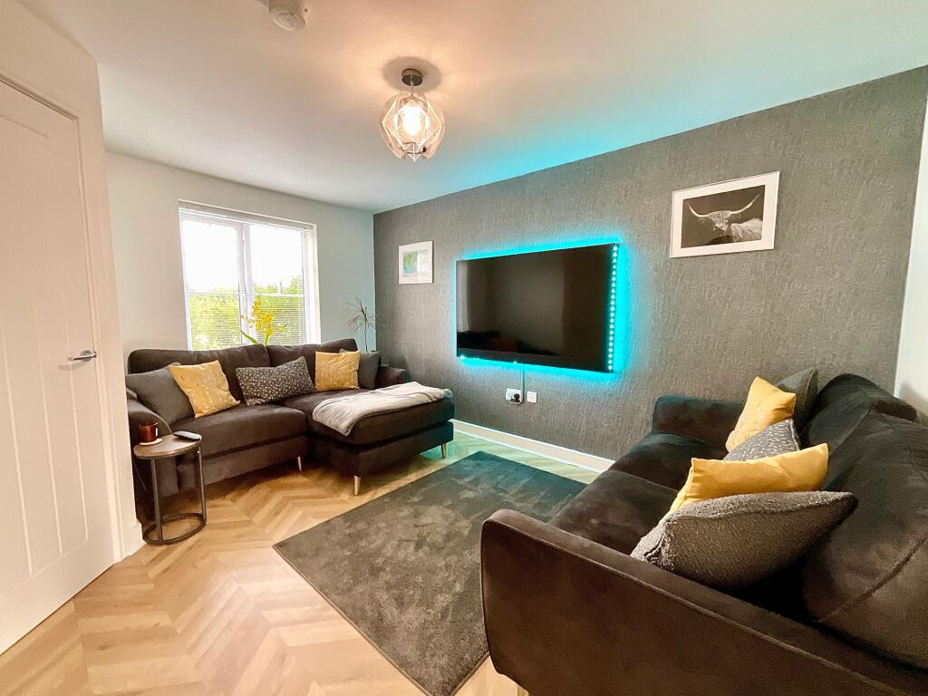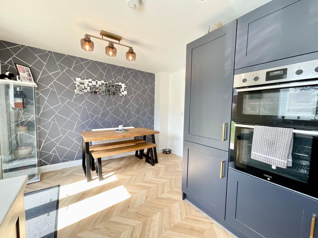 Beautifully presented 3-bed semi-detached home in Kingsbourne development. Upgraded kitchen and stylish bathrooms. Open-plan kitchen, separate lounge, utility & W.C.