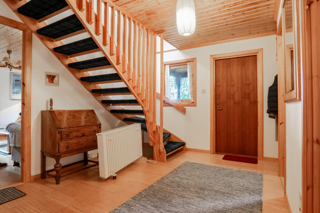The property is a detached house located in Glaichbea, Beauly. It features 3 bedrooms and 2 bathrooms, with a total living space of 1,233.22 sqft. The condition of the property appears to be fair and the interior design is dated. The property benefits from a substantial plot size, surrounded by trees and greenery. There is a large garden and a detached garage.