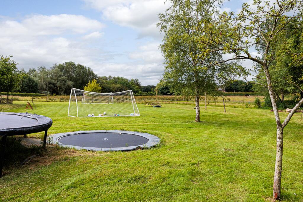 This detached property on School Lane, Ollerton, presents a unique opportunity for discerning buyers seeking a blend of traditional charm and modern luxury. The house features six bedrooms and five bathrooms, making it ideal for a large family. The location offers a balance between rural tranquility and accessibility to nearby towns and excellent schools. The property is in excellent condition, with well-maintained interiors and exteriors. The extensive gardens and additional outbuildings add to the property’s appeal. While the price is relatively high, the unique features and prime location may justify the investment for the right buyer. The property includes a gym, office, utility room, multiple parking spaces and ensuite bathrooms.