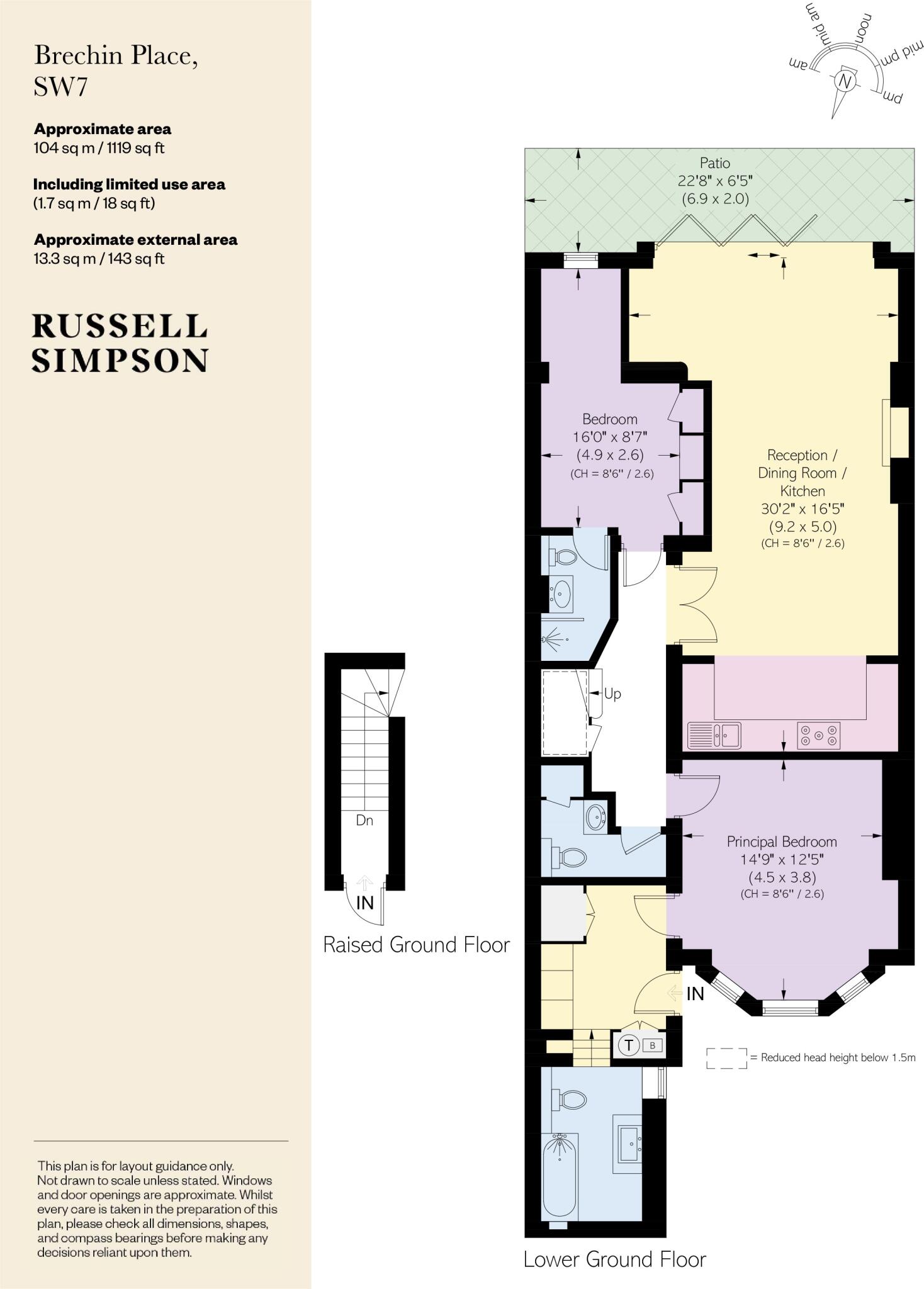 South Kensington flat with fashionable interiors and paved south-east facing patio