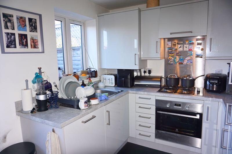 This is a two-bedroom terraced house located on Roger Croft Drive in Thatcham, West Berkshire. The property is listed for £310,000 by Halletts Estate Agents. The house has one bathroom. While the square footage is not provided, the average square footage in the area is 758. The property includes a garden. Nearby amenities include schools and transportation links, such as Newbury Racecourse and Thatcham train stations. The property appears to be in generally good condition, although some minor updates could be beneficial. The price seems reasonable compared to the average in the area.