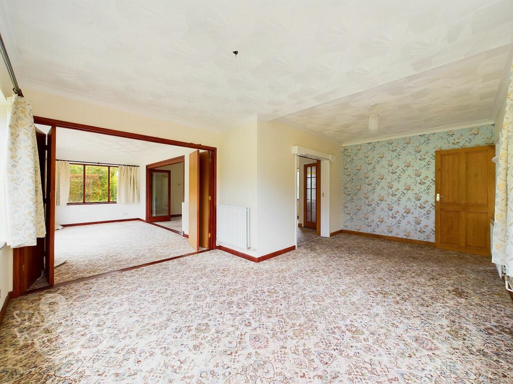 This property is a 5 bedroom detached house located in Shotesham All Saints, a village close to Norwich. The property is set on a large plot of land with mature trees and shrubs. It benefits from a double garage and ample parking. The property is in need of modernisation, with dated interiors and carpets throughout. However, the large plot and location make it a desirable property. The price is slightly above average for the area, but this is likely due to the size of the plot and the number of bedrooms.