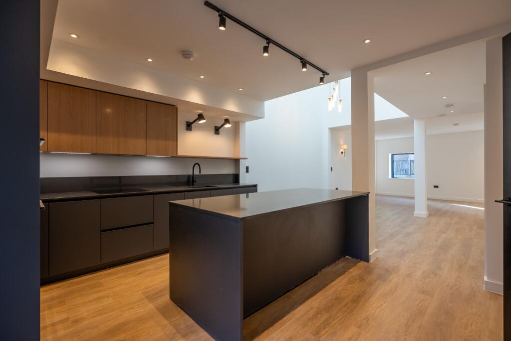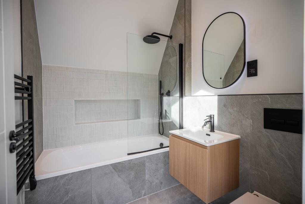 The property is presented in excellent condition. The images show a modern, newly built home with high-quality fixtures and fittings. There is no visible evidence of wear and tear or the need for any repairs or renovations. The modern design and finishes contribute to its overall appeal. The property benefits from a private rear garden, which is a desirable feature in a town centre location.