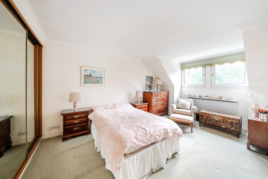 Deceptively spacious split level apartment spread over the first and second floor of this attractive development in a private cul-de-sac just off Bush Hill. Requiring some updating but benefitting from four bedrooms, two receptions, three bathrooms, separate WC, 32ft terrace, garage, chain free.