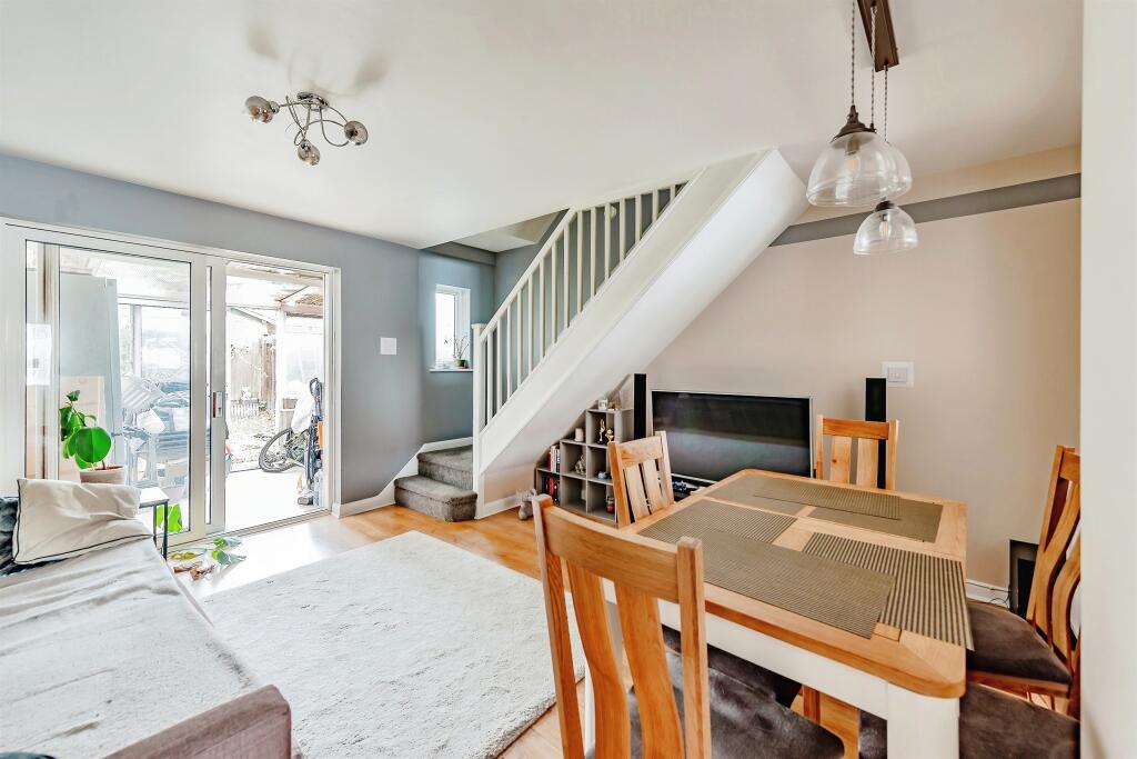 Connells are delighted to bring to the market this two bedroom mid terraced house. The property benefits from kitchen, lounge diner and conservatory. With two double bedrooms and family bathroom. Externally the property benefits from a garage en bloc as well as a front & rear garden. No onward chain