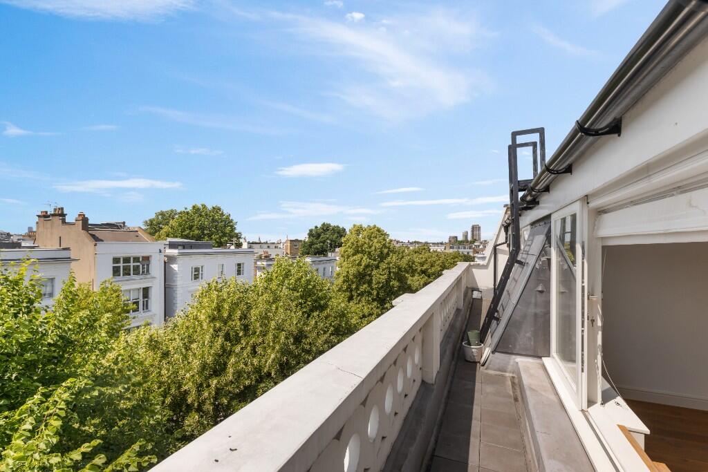 A beautifully presented two-bedroom, two-bathroom apartment located on the top floor of an elegant stucco-fronted building on one of Notting Hill's most desirable streets.