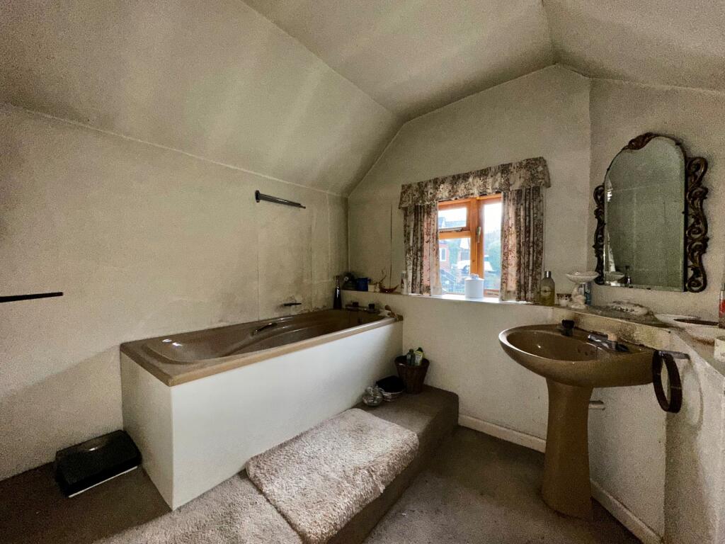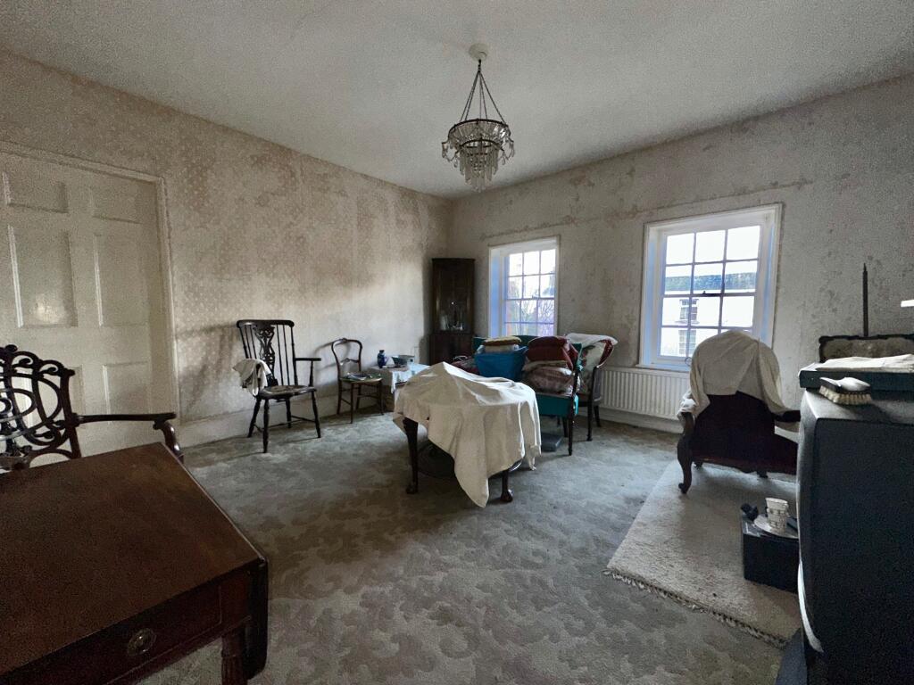 The property appears to be in need of significant renovation. The interior photos show outdated fixtures, peeling paint, and general disrepair in several rooms. The exterior, while historically significant, also shows signs of needing work. A full refurbishment would be required to bring the property up to modern standards.