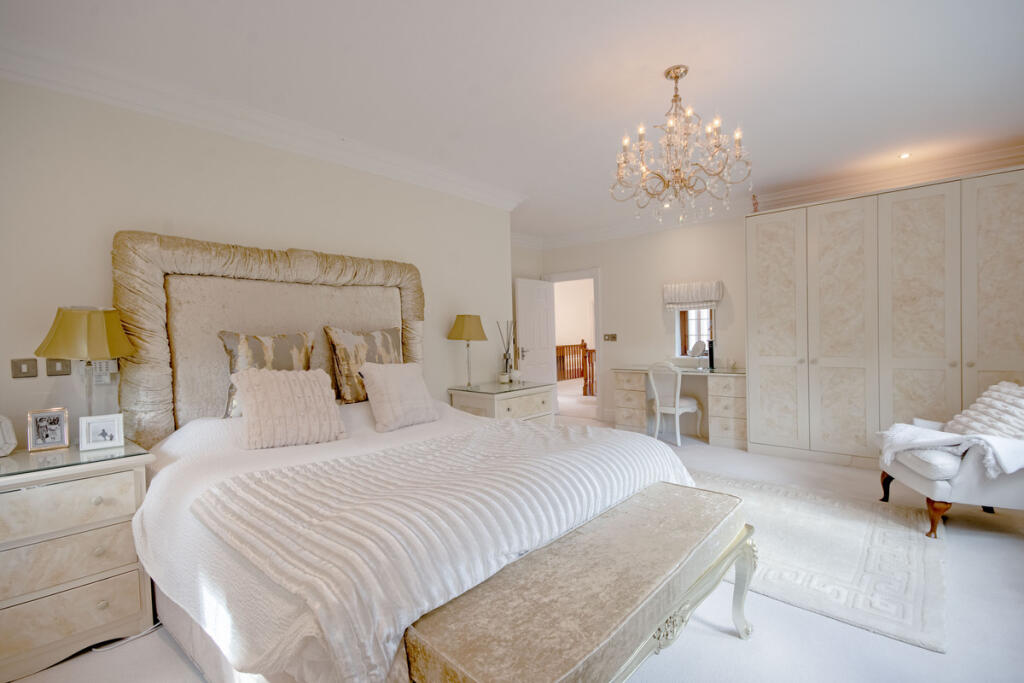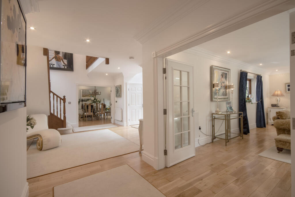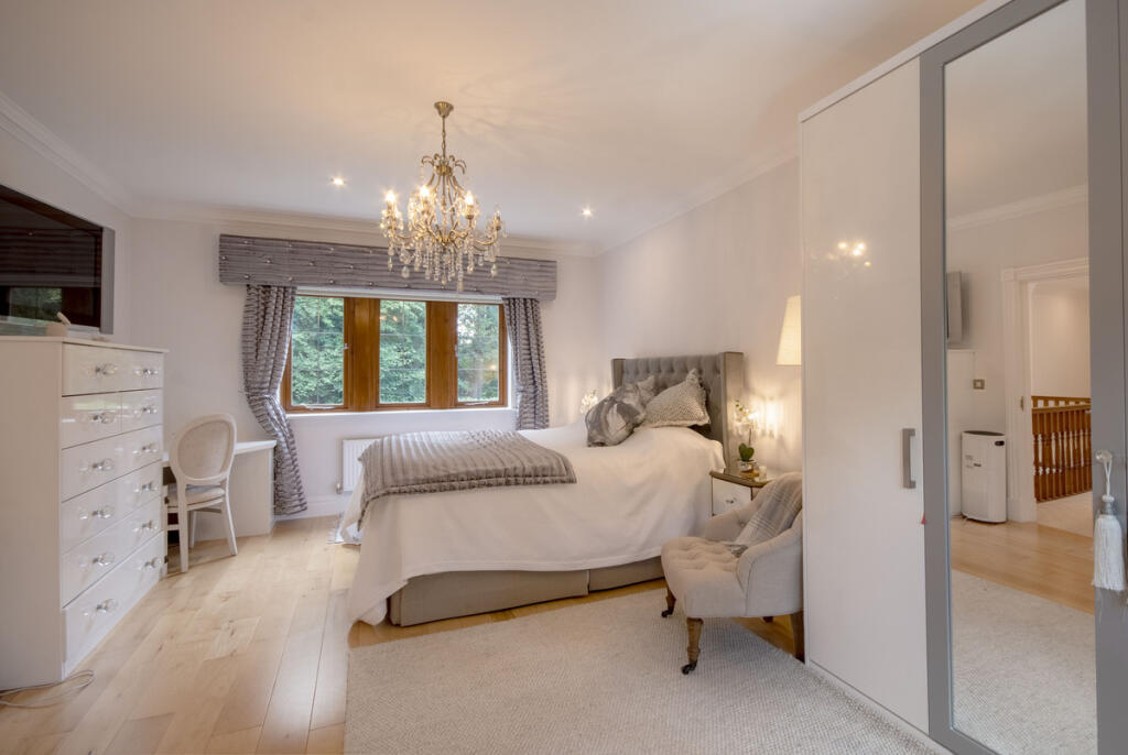 Wellingtonia House, set in the exclusive Bunny Hall Park estate, offers over 5,600 sq. ft of luxury living. One of just six bespoke homes, all designed with privacy and security in mind, it features six bedrooms, five bathrooms, and four reception areas