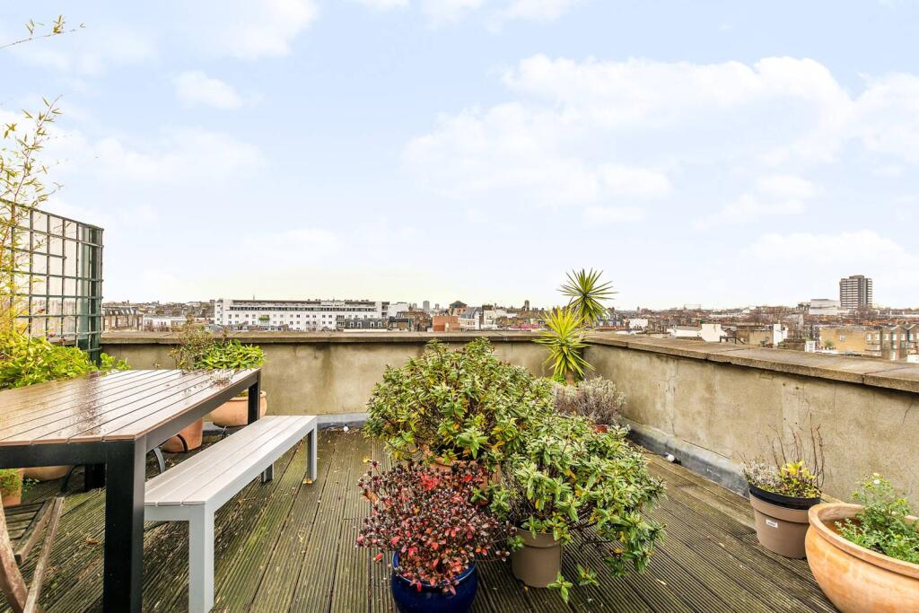 ZERO DEPOSIT AVAILABLE. LONG LET. A light and spacious two bedroom fourth floor flat (with lift) presented in exceptional condition and benefiting from a large south-west facing roof terrace with fantastic views over west London.