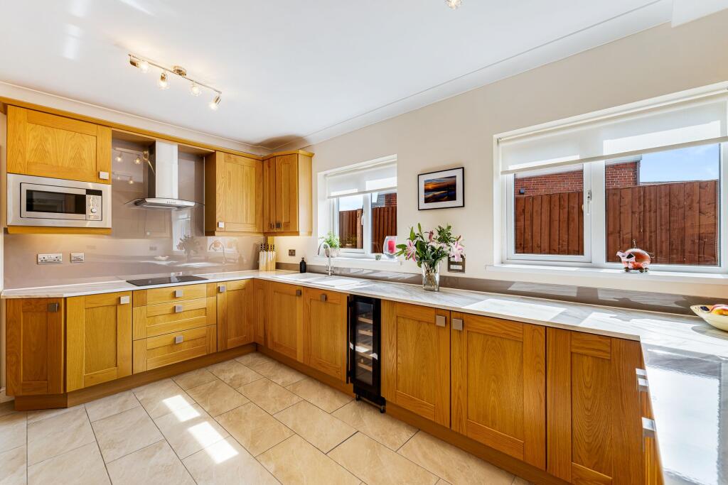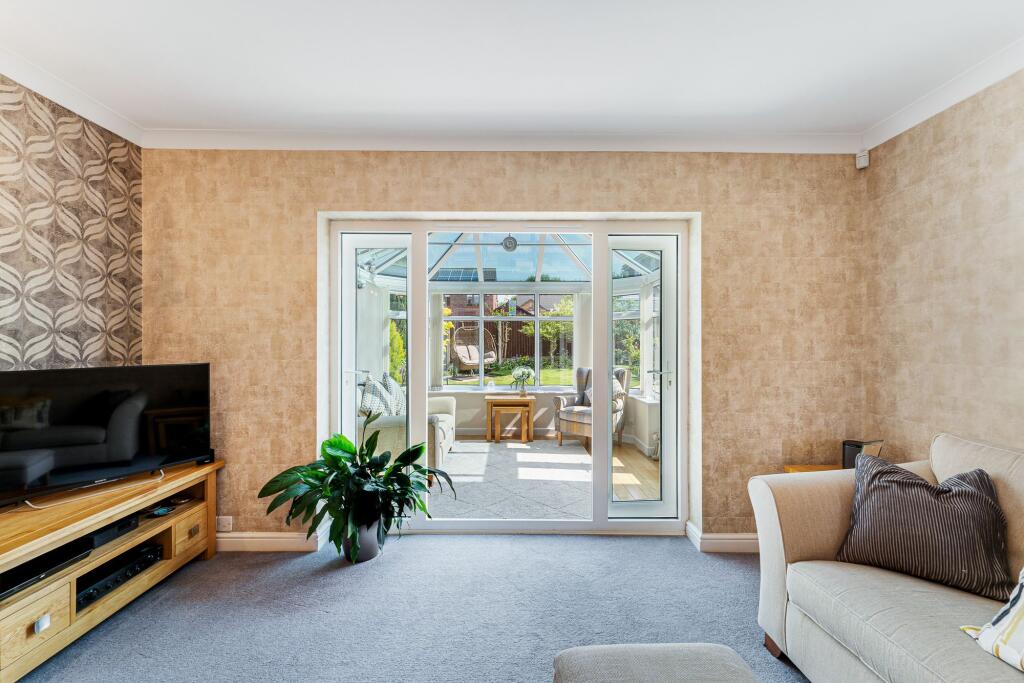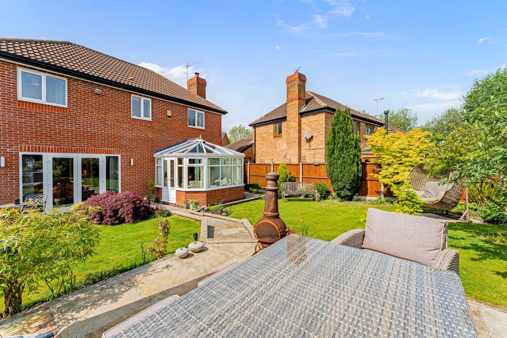 Spectacular 4-bed detached house with spacious interior in sought-after location. Large kitchen, conservatory, main bedroom en suite, double garage, patio, and ample parking. Perfect for families