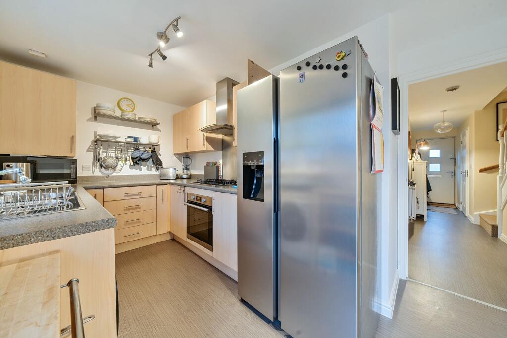 This four-bedroom, two-bathroom townhouse located on Soprano Way, Trowbridge, Wiltshire, is presented in good condition. The property is situated within the popular Castlemead development, offering a convenient location near to well-regarded primary schools such as Castle Mead School (rated ‘Good’ by Ofsted). The images showcase a modern interior with a well-maintained kitchen and bathrooms. The property boasts a small rear garden, and there is off-street parking provided by a garage. The listing price of £320,000 is competitive within the immediate area and seems appropriate, though more precise data on nearby property sizes would allow for a firmer assessment of its price per square foot. The lack of extensive land (a small garden is present) reduces the overall value proposition compared to detached properties in the area. The nearby Trowbridge train station offers convenient access to wider transport networks. Overall, the property presents a comfortable family home, but prospective buyers should carefully consider the garden size in relation to their needs and compare the price per square foot to similar properties in the area using more comprehensive data.