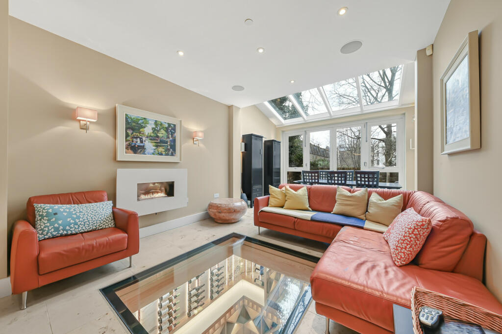This four-bedroom, three-bathroom terraced house located on Clifton Villas in Little Venice offers a blend of modern living and period charm. The property’s interior shows evidence of stylish modernisation, boasting a contemporary kitchen, multiple fireplaces, and a unique feature - a glass-floored living room revealing a well-equipped wine cellar below. High-quality finishes, including hardwood floors and modern lighting fixtures, are noticeable throughout. The layout appears well-designed, with ample living space spread over multiple floors. Although the photos don’t reveal much about the exterior, the property appears to be in very good condition, and the location in Little Venice is an undeniable advantage, offering access to the area’s canals, shops, and restaurants. Nearby, are highly-rated primary schools and transport links to central London are also convenient. While the property’s limited outdoor space is a slight drawback, the overall appeal of the location, condition, and unique features make it a desirable property for potential buyers looking for luxury in a sought-after area of London. The lack of specific plot size information prevents an absolute assessment of the value of the land itself. Overall, this property represents a premium offering in a prime central London location, and the price reflects this premium status.