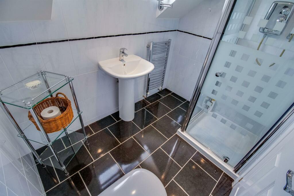 This is a detached property located in Notton, Wakefield. It features five bedrooms and four bathrooms, making it suitable for a large family. The property appears to be in good condition, with a modern kitchen and well-maintained bathrooms. It also benefits from a good-sized garden with a patio area and a shed. The location offers a more rural setting, while still being within reasonable distance of Wakefield and Barnsley. The property is listed for £775,000, which seems reasonable given its features and location. The house includes a garage, patio and utility room.