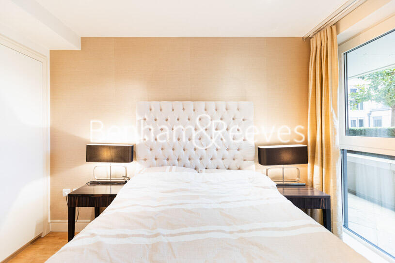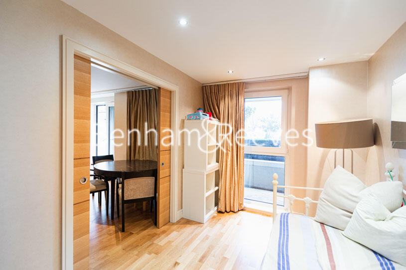 A large bright air-conditioned ground floor apartment with managed parking and spacious terrace. Situated within a landmark Riverside development, minutes from Imperial Wharf Overground Station.