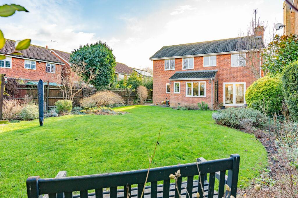 4-bed detached home in Stanstead Abbotts. Features living room, dining room, kitchen, utility, office, wc, en suite, bathroom, driveway, double garage, & rear garden. Close to station & amenities.
