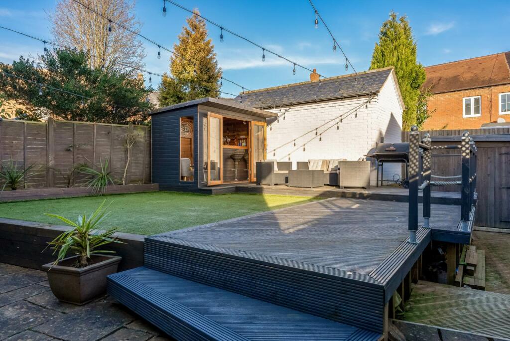 This four-bedroom, two-bathroom detached house located on Meadowsweet Way in Banbury, Oxfordshire presents a modern and well-maintained family home. The property benefits from a recently updated kitchen and bathrooms featuring contemporary designs and finishes. The interior is presented to a high standard and offers bright, spacious living areas. The property also includes a good-sized, well-landscaped rear garden with additional features including a substantial decking area and a high-quality outdoor structure. The inclusion of a family friendly location, close to schools and amenities, enhances the property’s appeal. The lack of information on plot size, average prices per square foot in the area, and overall property age prevent the provision of a more precise analysis. However, based on the available details, this property would likely attract a large number of potential buyers; further data would allow for a more precise valuation.