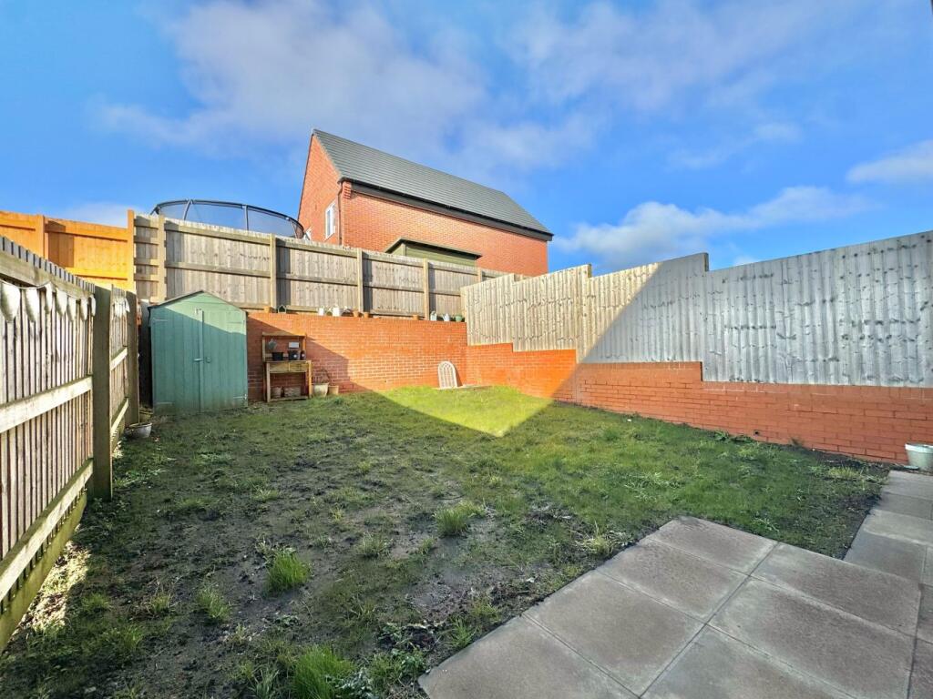The property includes a garden, although its size isn’t specified numerically. The images show a relatively small, enclosed garden, suitable for outdoor seating but not extensive.