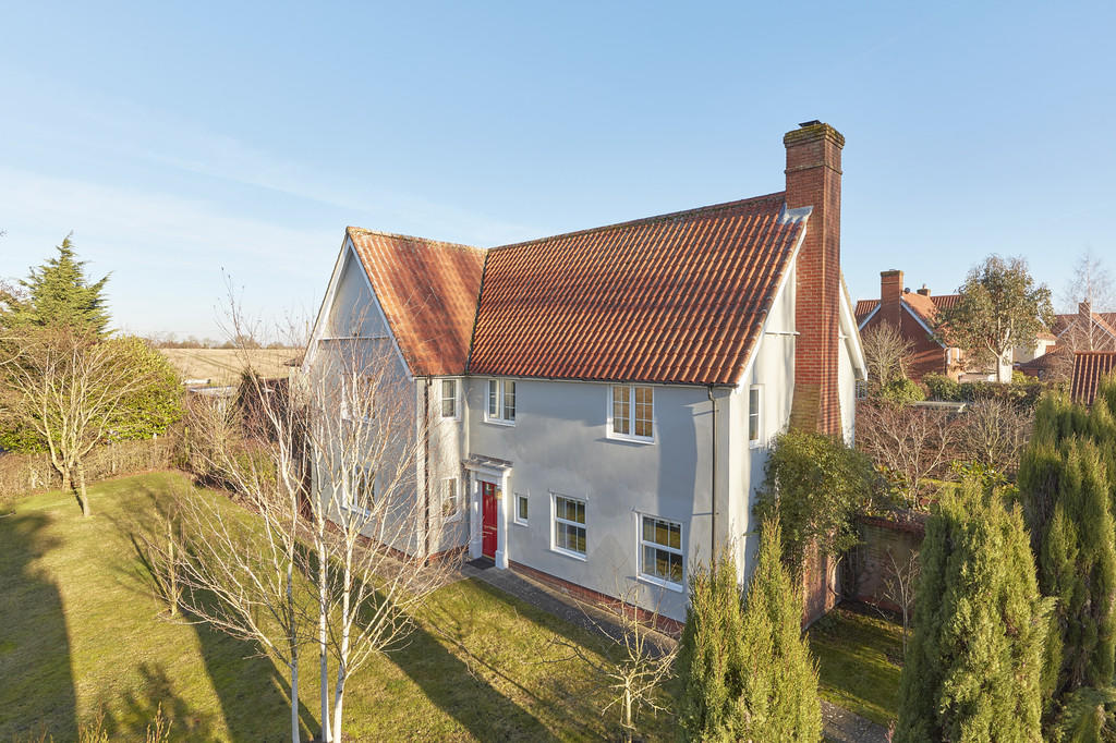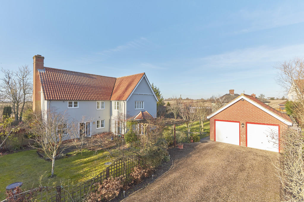 A particularly spacious and favourably positioned five-bedroom detached home set elevated from the road with stunning countryside views on the outskirts of Wickhambrook. The well-proportioned accommodation measures in excess of 2,200 sq.ft, all of which versatile with ample space for home-working...