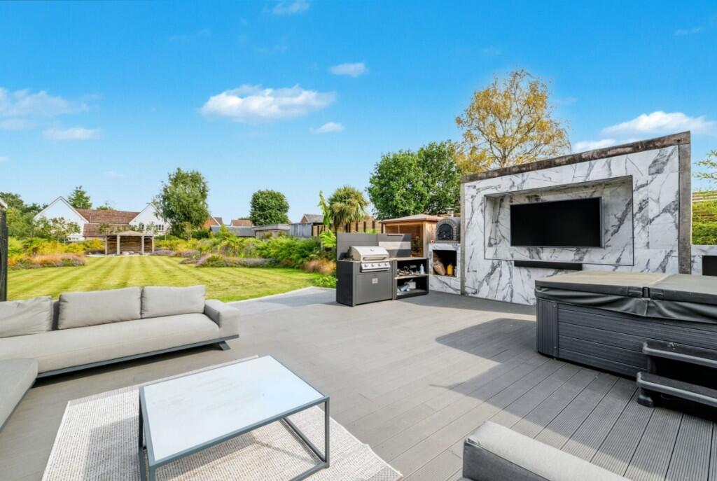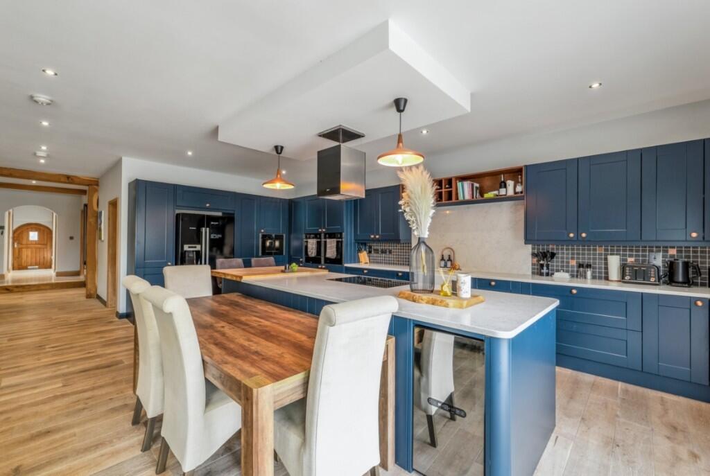 This is a detached bungalow located on Nursery Lane in The Woottons, King’s Lynn. The property features four bedrooms and an unknown number of bathrooms. The house is in excellent condition, with modern interiors and a well-maintained exterior. The property benefits from a large, landscaped garden with a spacious patio area, including an outdoor kitchen, bar, gym and sauna. Several schools are located within a reasonable distance, and the nearest train station is 4.49 KM away. The listing price is £825,000, which is higher than the average price in the area but potentially justifiable given the property’s condition, land, and features.