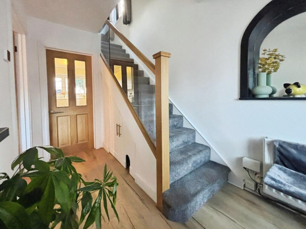 Charming 3-bed semi in Kipling Avenu, Boldon, featuring a gravelled driveway, front porch, laminate flooring, modern glass & oak staircase, cosy living room with log burner, cream shaker kitchen, dining room, sunroom, three bedrooms, bathroom, and a private rear garden with patio, lawn & double shed