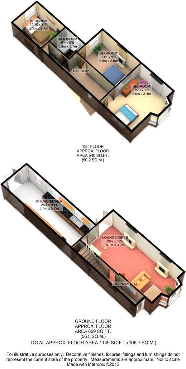 TOTAL FLOOR AREA - 108 Sq.m. A well presented three bedroom double bay fronted property offered for sale with no upper chain. The property has recently been re-decorated throughout and retains many original features to include coved ceilings and fireplaces. The property also benefits from (cont.)