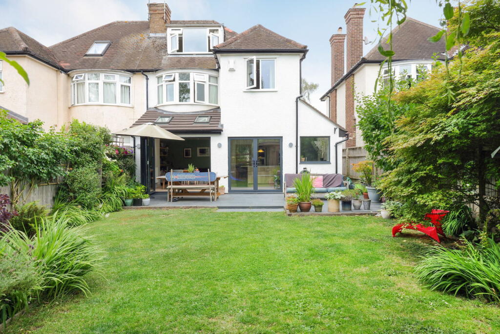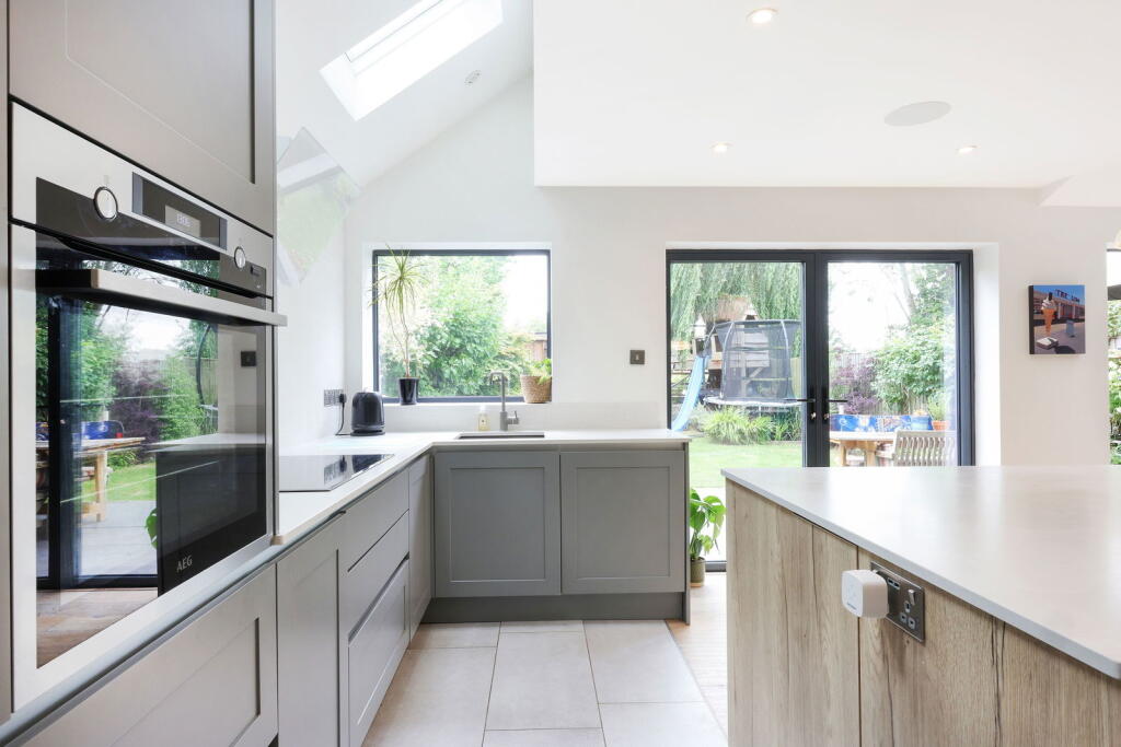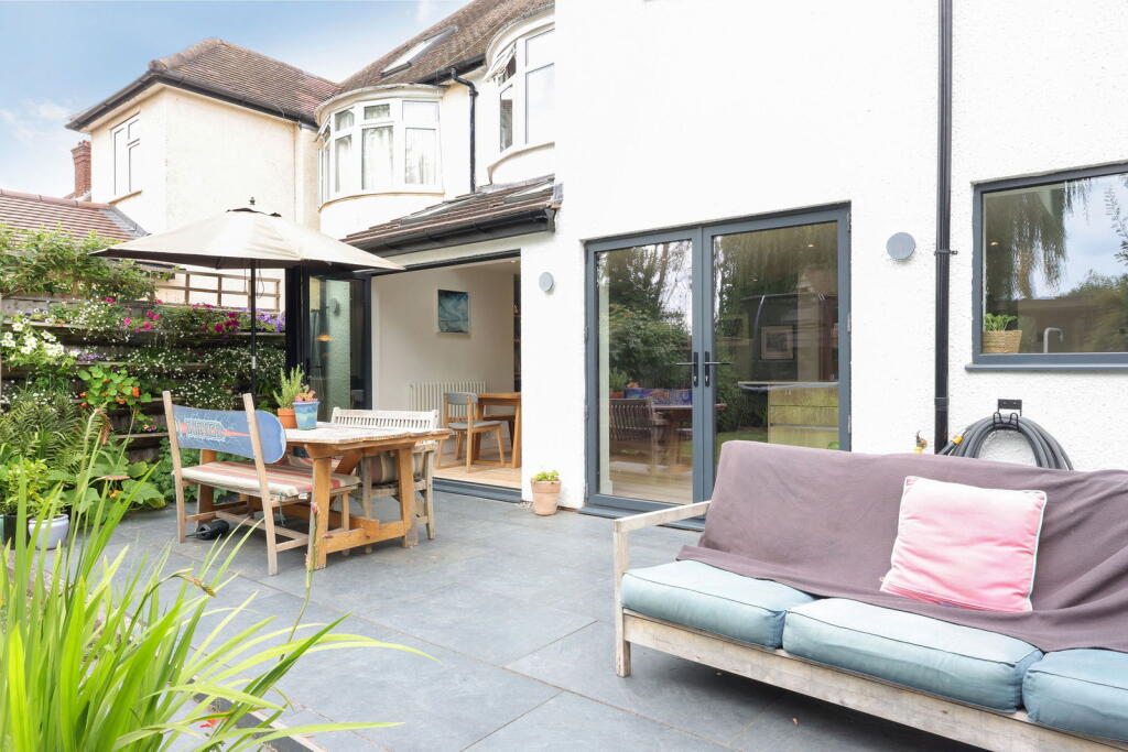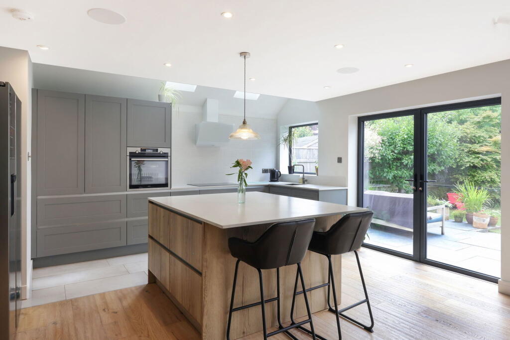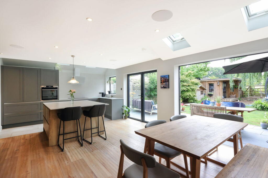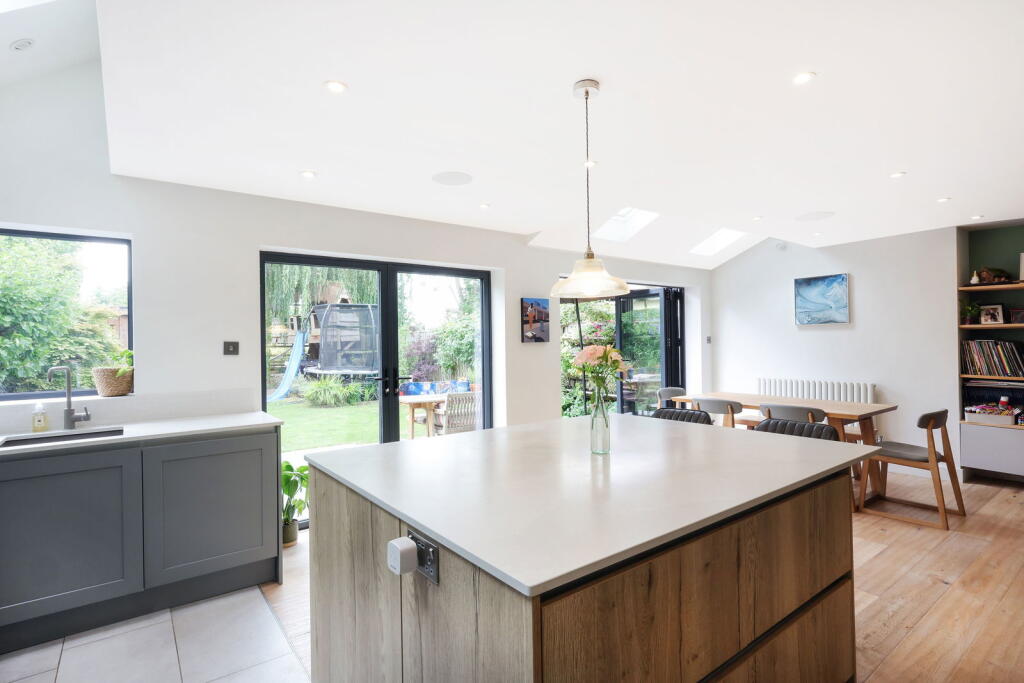 A stunning, 1930's family home with a fabulous open plan kitchen/family room and a beautiful garden which backs onto playing fields.