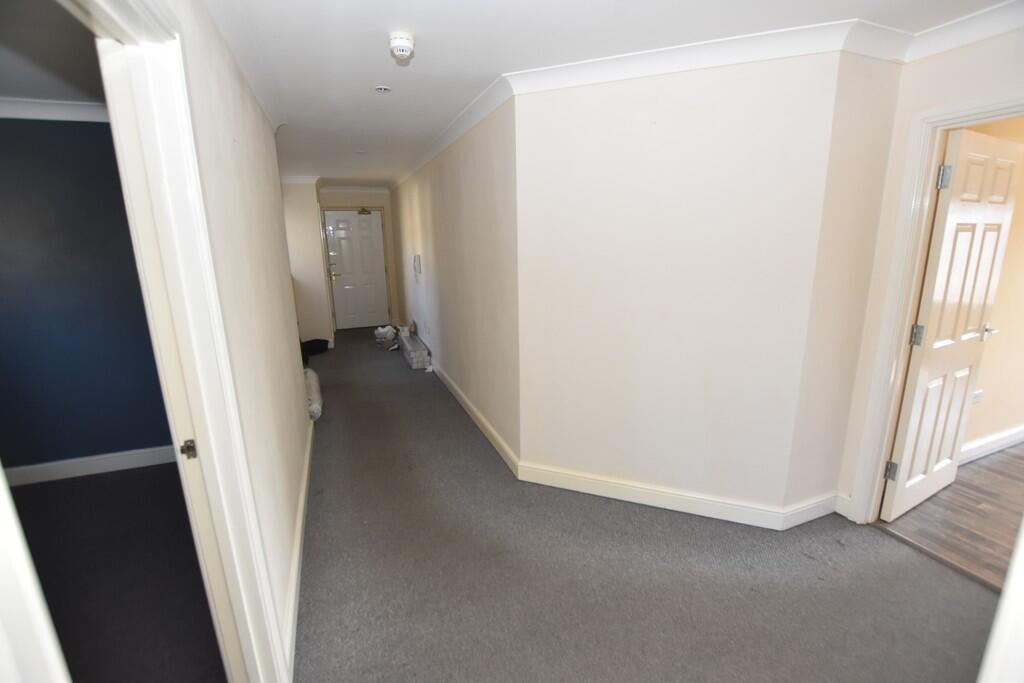 Perched atop the secure, gated development, this purpose-built flat offers a tranquil and spacious living experience. Accessed by a lift, the top-floor residence boasts two generously sized double bedrooms, a bright and airy sitting room, and a fitted kitchen. A lengthy hallway, unusually spaciou...