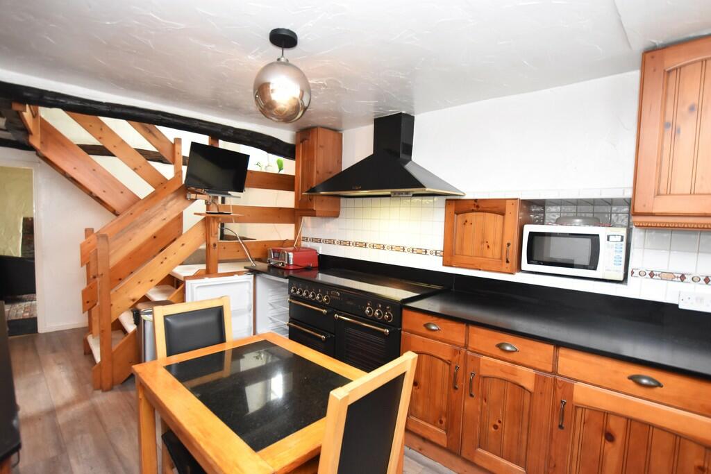 The property itself showcases a blend of features. The kitchen and bathroom appear to be in a reasonable state, while other areas, such as the flooring and general décor, suggest a need for modernisation. The exposed beams add character, but also highlight its age, making ongoing maintenance a potential consideration. The property includes a small yard which, while functional, is not a large or particularly impressive outdoor space.