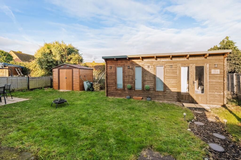 This two-bedroom bungalow located on All Saints Road in Allhallows, Rochester, Kent is presented in generally good condition. The property benefits from a recently updated interior including the kitchen and bathroom, which showcase modern finishes and appliances. The inclusion of a sizeable garden with a substantial wooden studio adds value, potentially offering flexible use as a home office, workshop or additional living space. The exterior of the property presents a typical bungalow design with landscaping, though specific dimensions of the plot aren’t available for precise assessment. The lack of nearby comparable property data limits a thorough comparative market analysis to determine the property’s precise market value. The listing price reflects the current market conditions, but without adequate local comparison points, a definitive conclusion on value for money can’t be reached. Potential buyers should independently conduct comprehensive research into local property prices and the transportation links to fully understand the property’s overall value. The nearby schools, especially Peninsula East Primary Academy, are a positive factor for families. However, the distance to nearby train stations is significant, which should be considered in transportation planning.