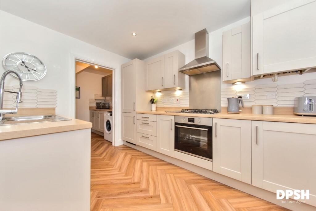This three-bedroom, two-bathroom detached house in Churwell, Morley, Leeds presents as a well-maintained and modern property. The images reveal a contemporary interior with an open-plan kitchen-diner, spacious living areas, and en-suite master bedroom. The property boasts modern finishes and appears to be in excellent condition, suggesting it may be new construction or a recent extensive refurbishment. The exterior is equally well-presented with a brick facade. A small but well-maintained garden and a paved patio area are visible in the exterior photos. The location offers a convenient blend of proximity to schools such as Cottingley Primary Academy (rated ‘Good’) and Churwell Primary School (also rated ‘Good’), and a train station (Cottingley), while retaining a quiet residential ambiance within a cul-de-sac. The list price of £315,000 falls within the range of similar properties in the area, appearing to represent fair market value for the features and condition presented. However, the lack of specific information regarding plot size and the more limited garden space restricts a more substantial evaluation of value. Overall, this property presents itself as a potentially appealing option for families or those seeking a modern, well-maintained home in a convenient yet peaceful location. Further due diligence on plot size and local price per square foot would refine this assessment.