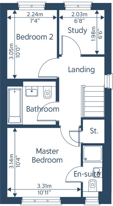 The Ordsall B has a stylish lounge and an open plan kitchen/dining room with doors leading to the garden. On the ground floor there is also a downstairs WC. On the first floor there is a lovely master bedroom with an en-suite, a further bedroom, study and the bathroom. Located in a popular village.