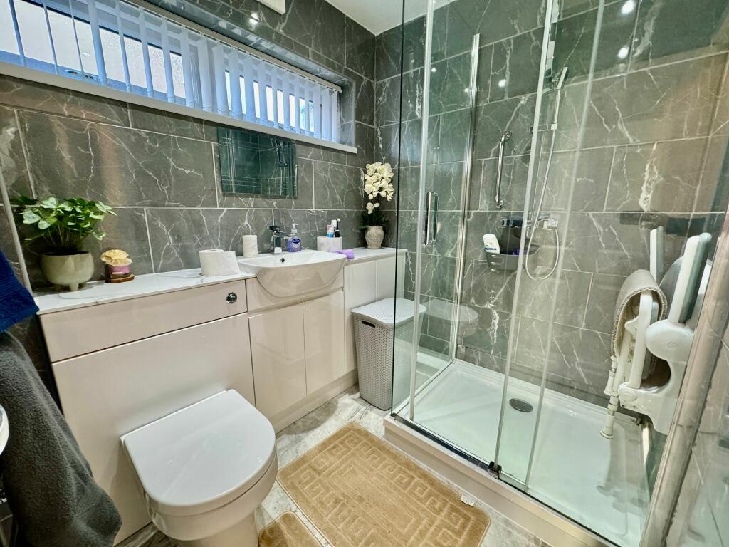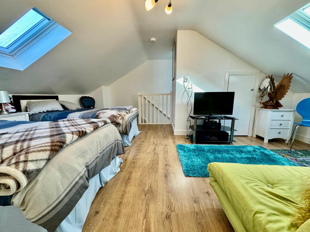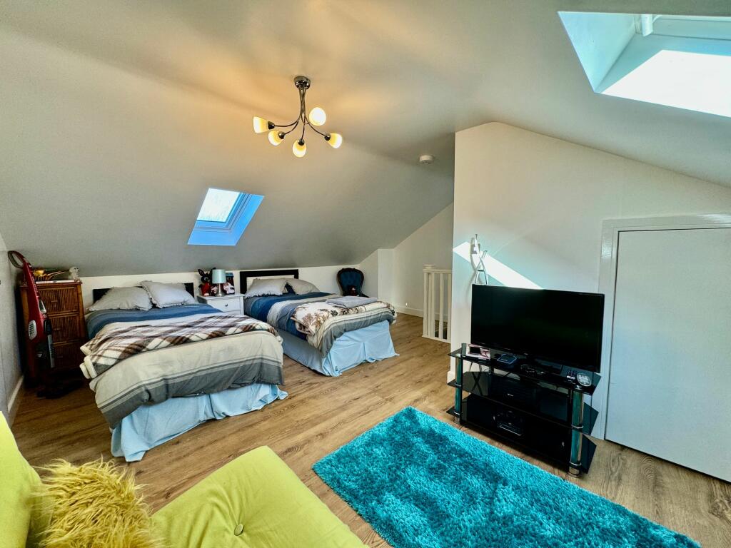 This semi-detached bungalow located in Toronto Close, Penmaen, offers a blend of modern convenience and a peaceful suburban setting. The property has undergone recent renovations or updates as evidenced by the modern kitchen and bathrooms, which present a clean and contemporary aesthetic. The interior boasts well-maintained hardwood flooring throughout the main areas, while the upstairs area is finished with a good quality wood laminate flooring that is both durable and stylish. The living areas are bright and spacious, with natural light enhancing the feeling of airiness. The property features two bedrooms, two bathrooms and an attic conversion that has been tastefully finished to provide comfortable living space and/or additional bedroom space.
