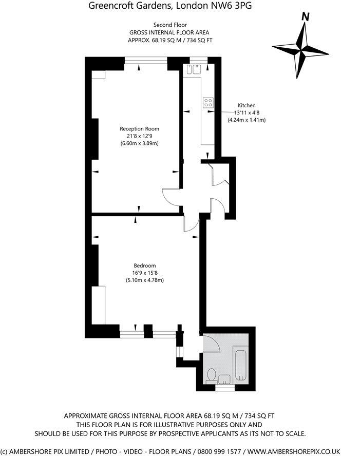 A beautifully presented one-bedroom second-floor flat, spanning an impressive 734 square feet in the heart of South Hampstead. Set within a charming period building in Greencroft Gardens, this property boasts a spacious 21' reception room, separate kitchen, and family bathroom. This spacious apar...